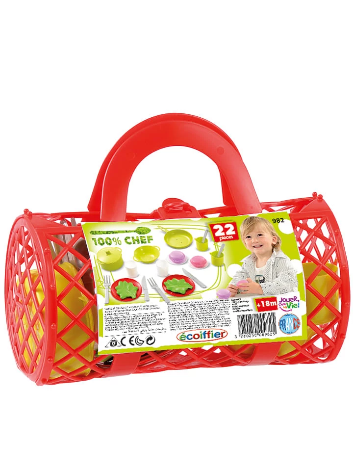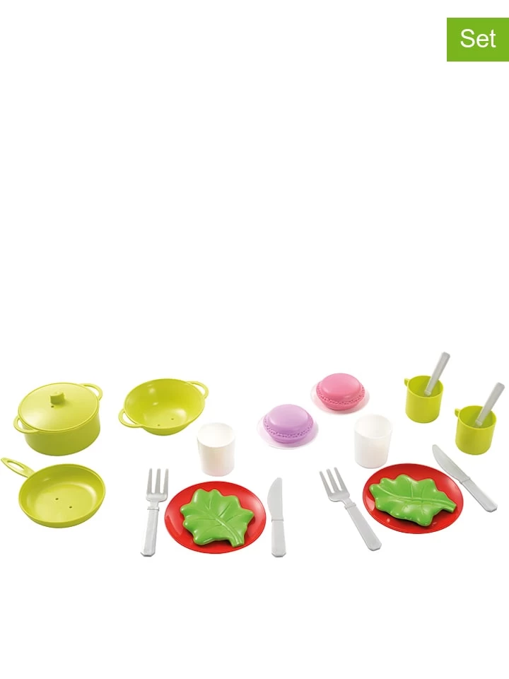 – Inhalt: 22 Teile (Teller, Besteck, Topf, Pfanne und mehr)