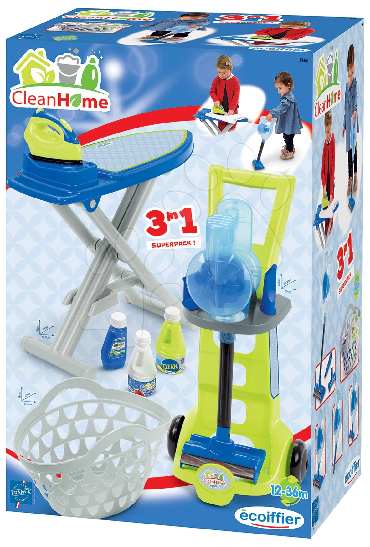 ECOIFFIER Aufräumungswagen Mit Bügelbrett 3v1 CleanHome Écoiffier Mit Reinigungs-Ergänzungen Ab 18 Monaten