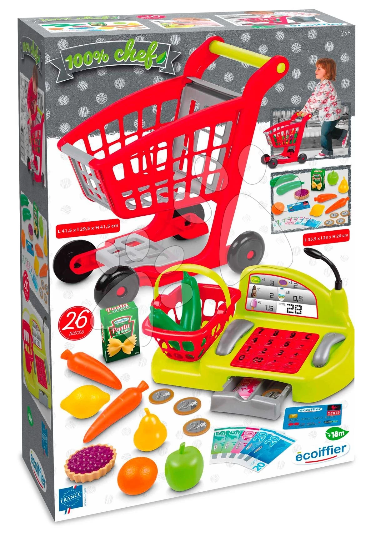 ECOIFFIER Einkaufswagen Mit Kasse 100% Chef Écoiffier Mit Körbchen Und Mit Nahrungsmitteln 26 Zubehör Ab 18 Monaten ECO1238