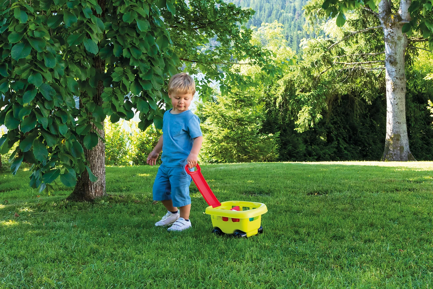 Mit diesem tollen Ecoiffier Garten-Handwagen-Set ausgestattet können kleine Nachwuchsgärtner*innen prima bei der Gartenarbeit helfen. Denn mit dem wendigen Handwagen auf vier Rädern sind die Kleinen ab 18 Monaten bestens ausgerüstet. Der Handwagen ist dank der Ziehstange besonders leicht zu steuern. Praktisch ist der Eimer, in dem sich alles prima transportieren lässt. Zur Ausstattung gehören zudem Schaufel und Rechen, eine Gießkanne und ein Sandförmchen. Eignet sich natürlich auch prima für den Sandkasten!