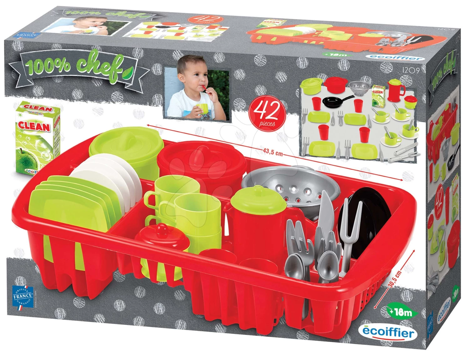 ECOIFFIER Geschirrtrockner Für Die Spielküche Big Dish Drainer Écoiffier Mit Zubehör – 42 Teile Ab 18 Monaten