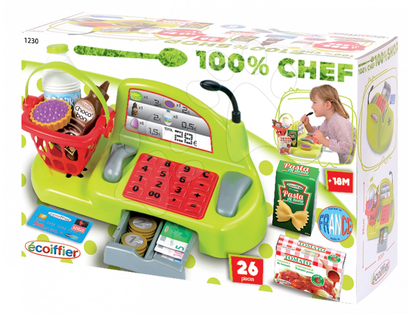 ECOIFFIER Kasse 100% Chef Écoiffier Mechanisch Mit Korb Und 26 Zubehörteilen Ab 18 Monaten