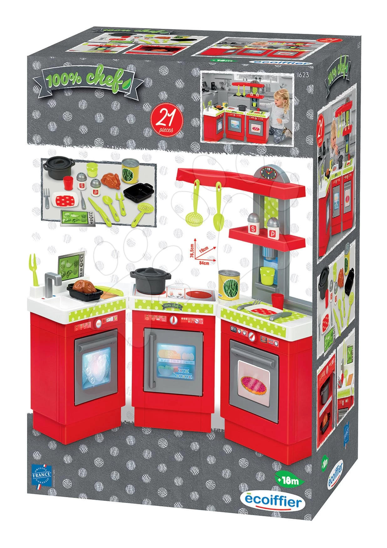 ECOIFFIER Küche 3 Module 100% Chef ÉCoiffier Dreiteilig Mit 21 Zubehörteilen Ab 18 Monaten