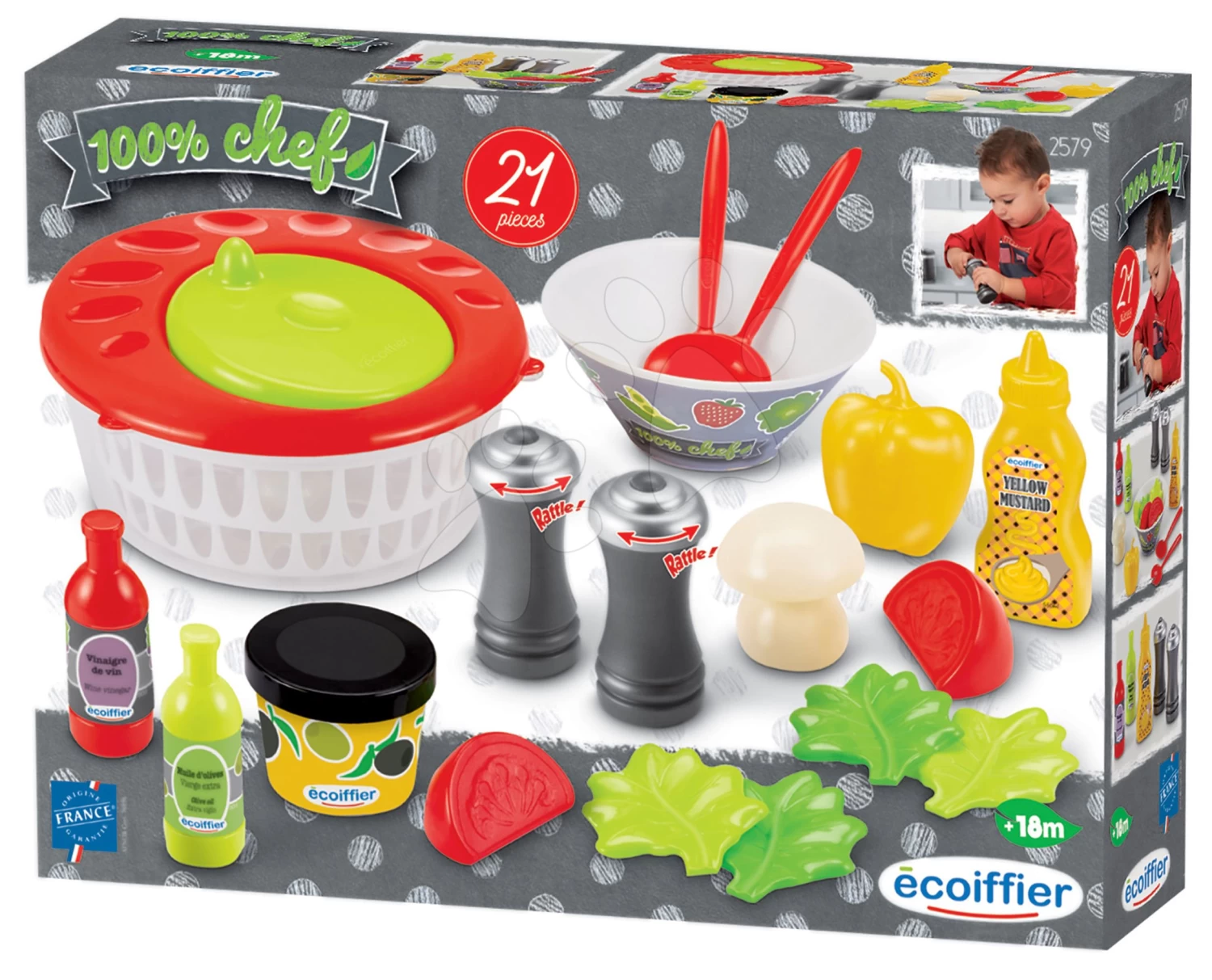 ECOIFFIER Salatbar 100% Chef Écoiffier Mit Einer Schüssel Trockner Gewürzen Und 21 Zubehörteilen Ab 18 Monaten