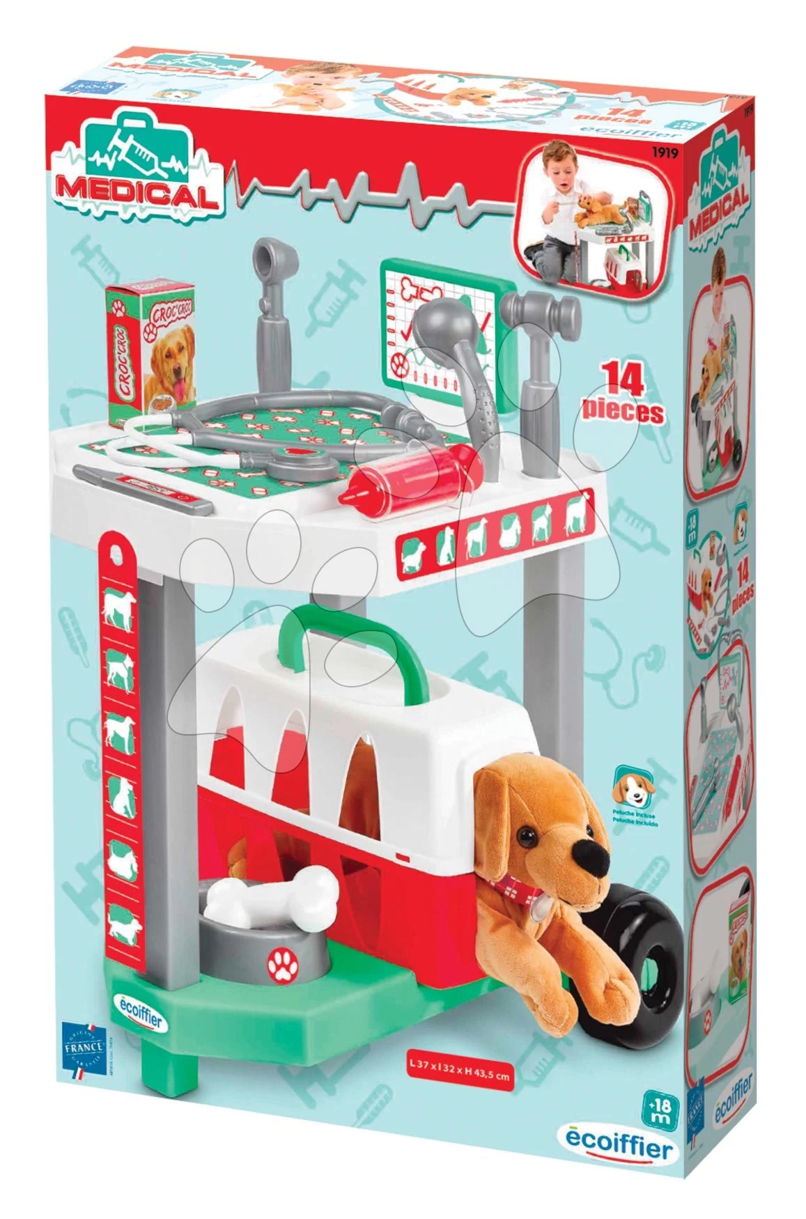 ECOIFFIER Tierklinik Mit Einem Plüschhund Veterinary Clinic Écoiffier Auf Einem Wagen Mit 14 Zubehörteilen Ab 18 Monaten ECO1919