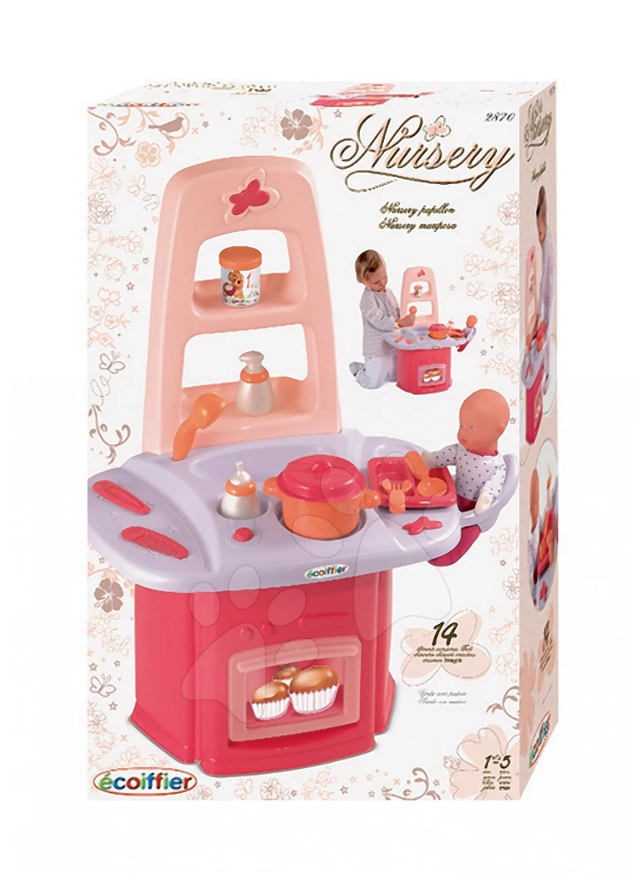 ECOIFFIER Wickeltisch Nursery Écoiffier Für Puppe Mit Küche Mit 14 Zubehörteilen Ab 18 Monaten