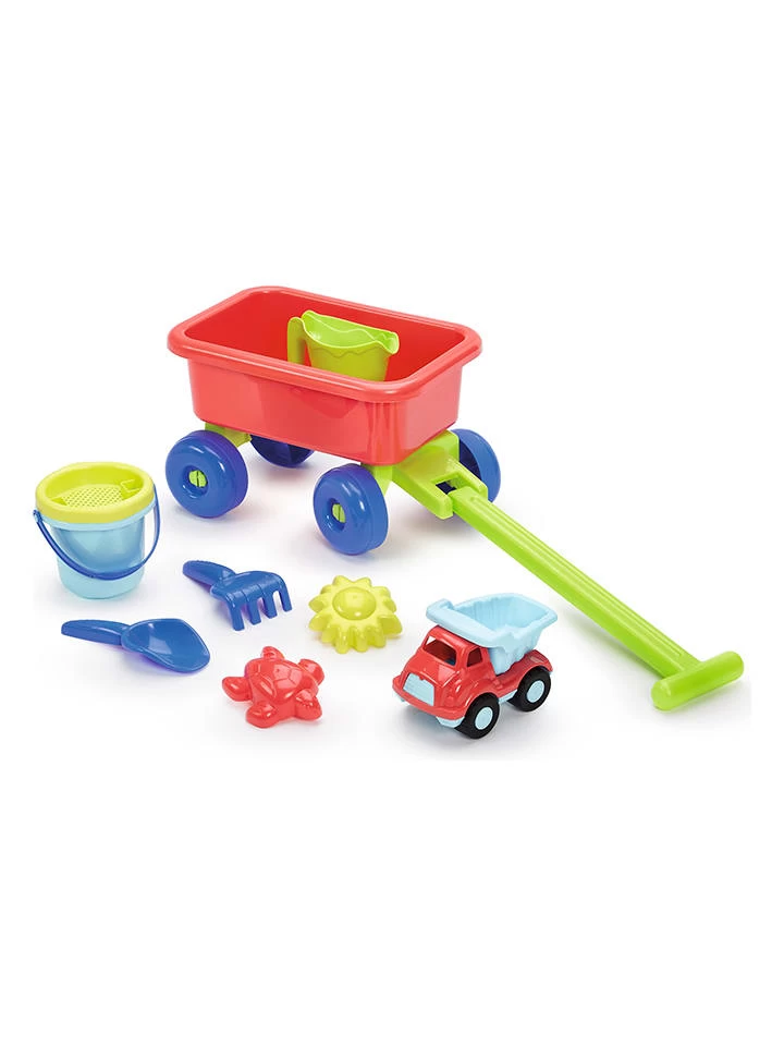 – Inhalt: Handwagen, Sandeimer (Ø 10 cm), Sieb, Gießkanne, 2 Sandförmchen, Schaufel, Rechen und Kipplaster