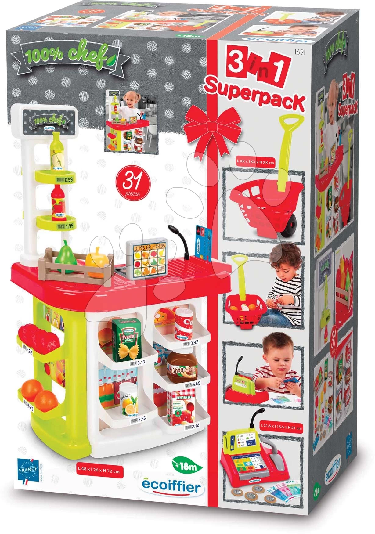 Shop Supermarkt 3in1 Checkout Ecoiffier Mit Kasse Und Einkaufswagen Und 31 Zubehör Ab 18 Monaten ECO1691
