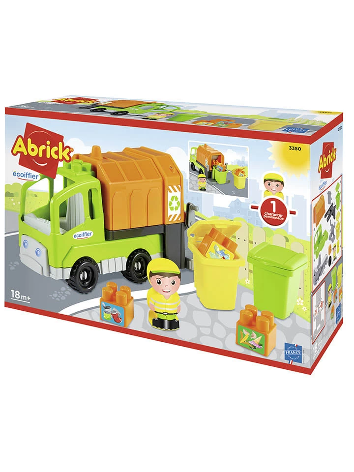 – Inhalt: 1 Müllwagen, 1 Figur, 2 Mülltonnen, 3 Bausteine